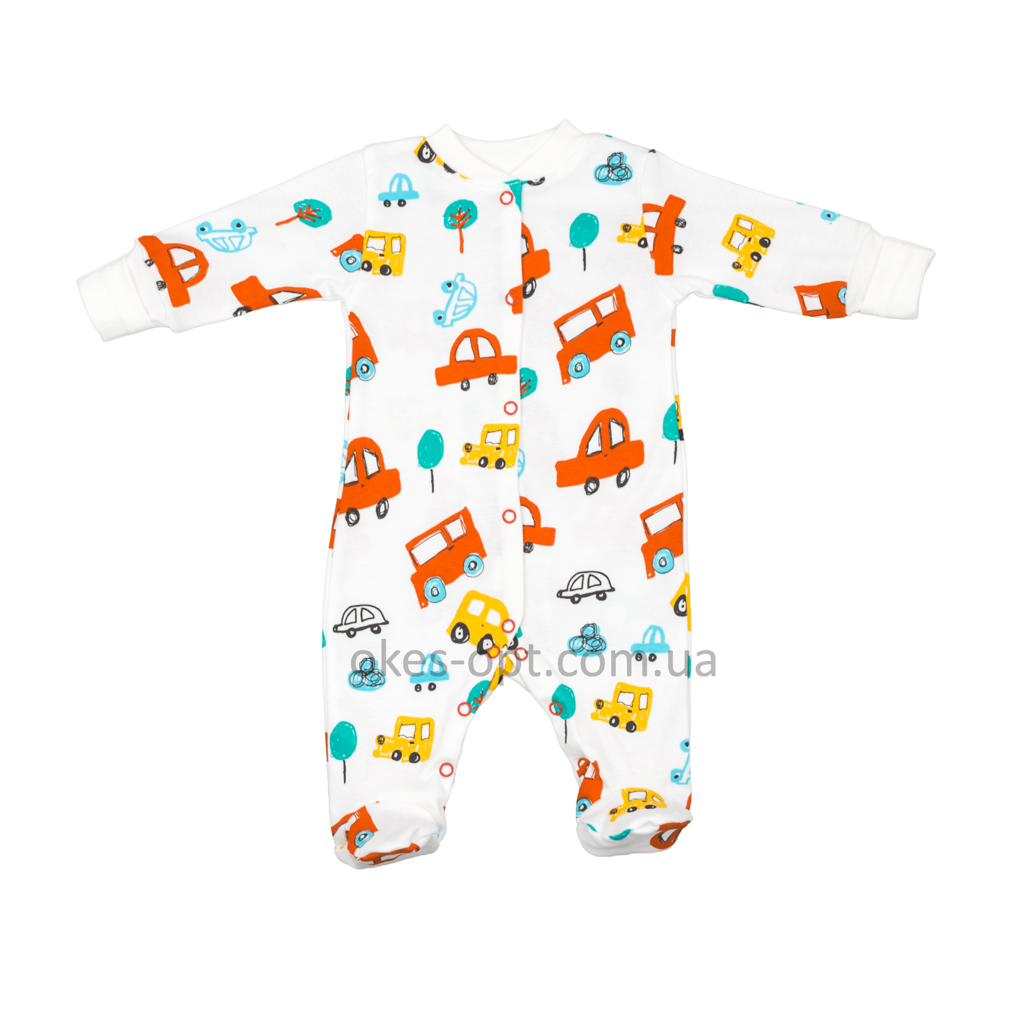 Чоловічок для новонароджених “Ретро машинка” застібається по усій довжині на обидві ніжки, пасує на виписку в пологовий будинок і малюкам 0-3 міс. Манжетик можна вивернути та закрити ручку.