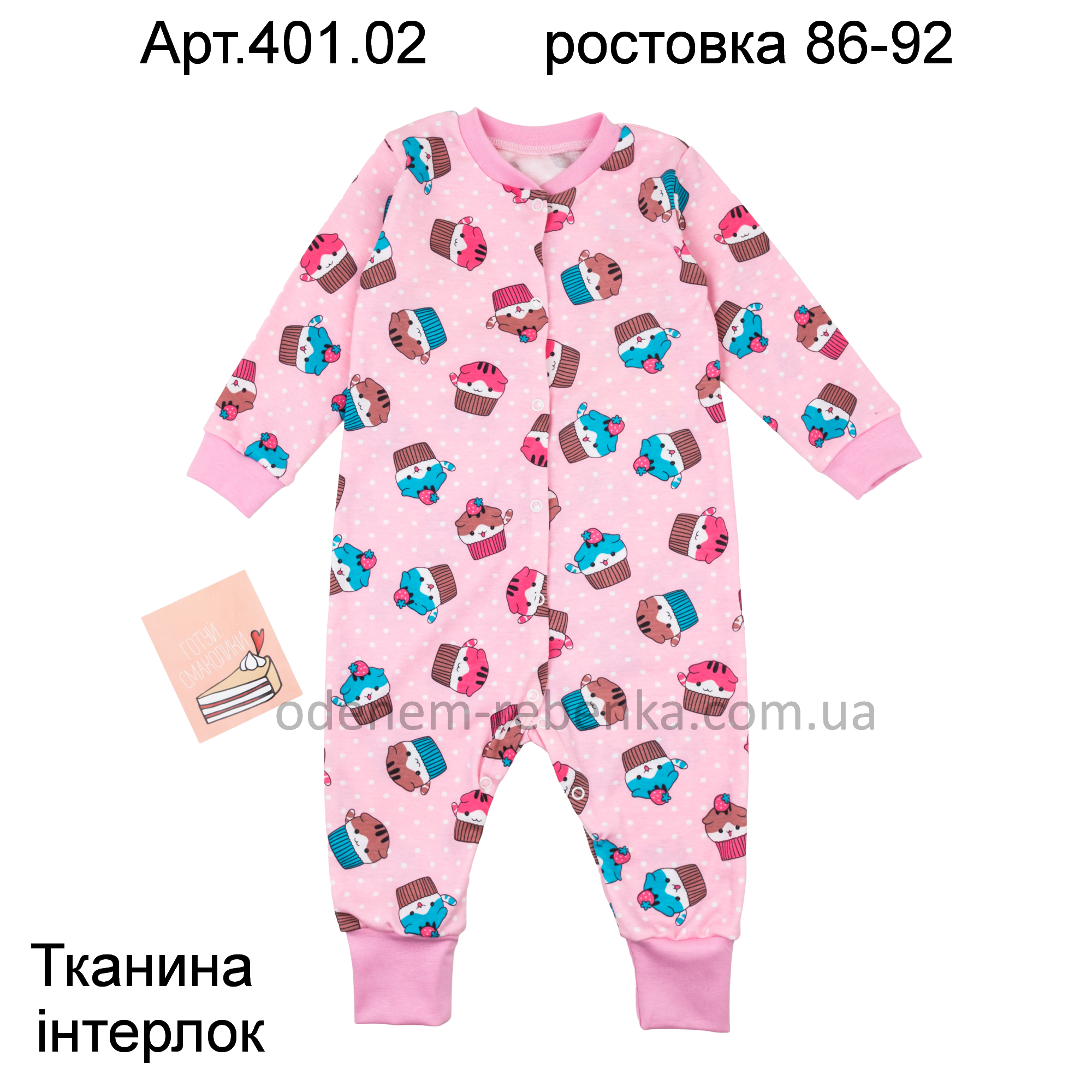 Комбінезон на дівчаток веселий та яскравий, якісно пошитий, практичний для матусі та зручний для дитини, застібається на кнопочки по усій довжині та на обидві ніжки. Рукава і штанини на манжетах.