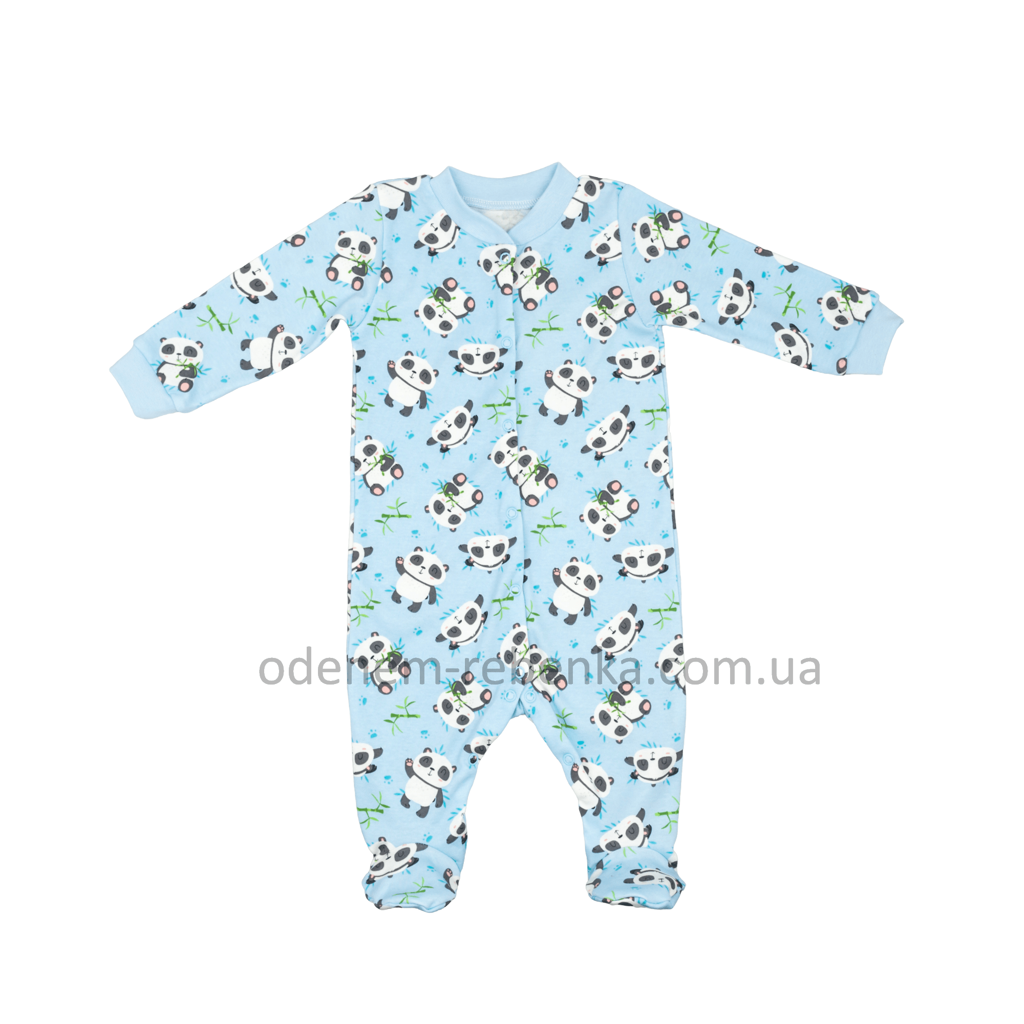 Чоловічок для малюків “Панда” застібається по усій довжині на обидві ніжки, пасує для повсякденного використання на вік 3-9 місяців.