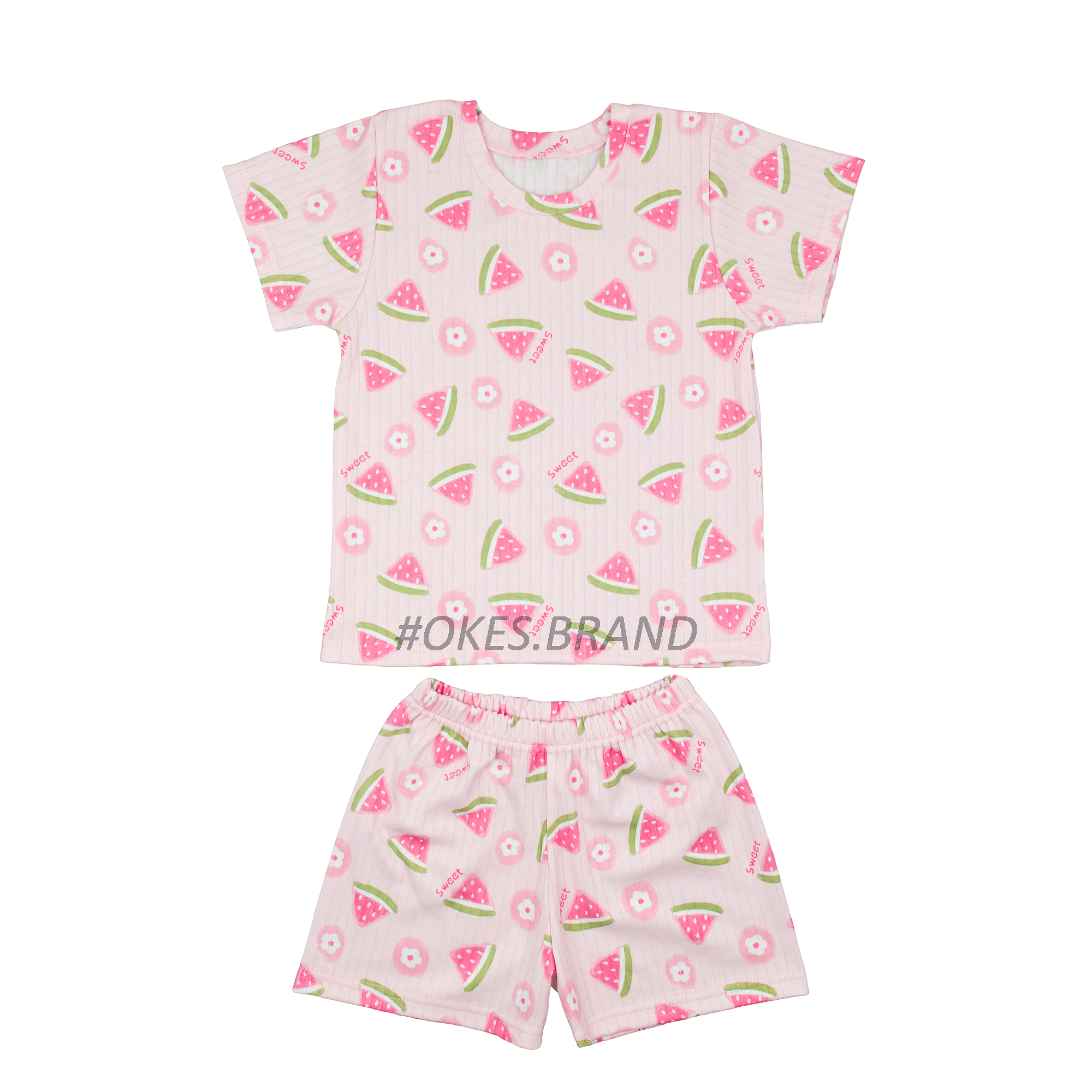 Піжама літня для дівчаток пошита з тканини інтерлок в рубчик, високоякісна бавовна 100%, добре вбирає вологу, пропускає повітря. Модель вдягається через голову. Впродовж часу не сідає, не деформується, утримує колір.