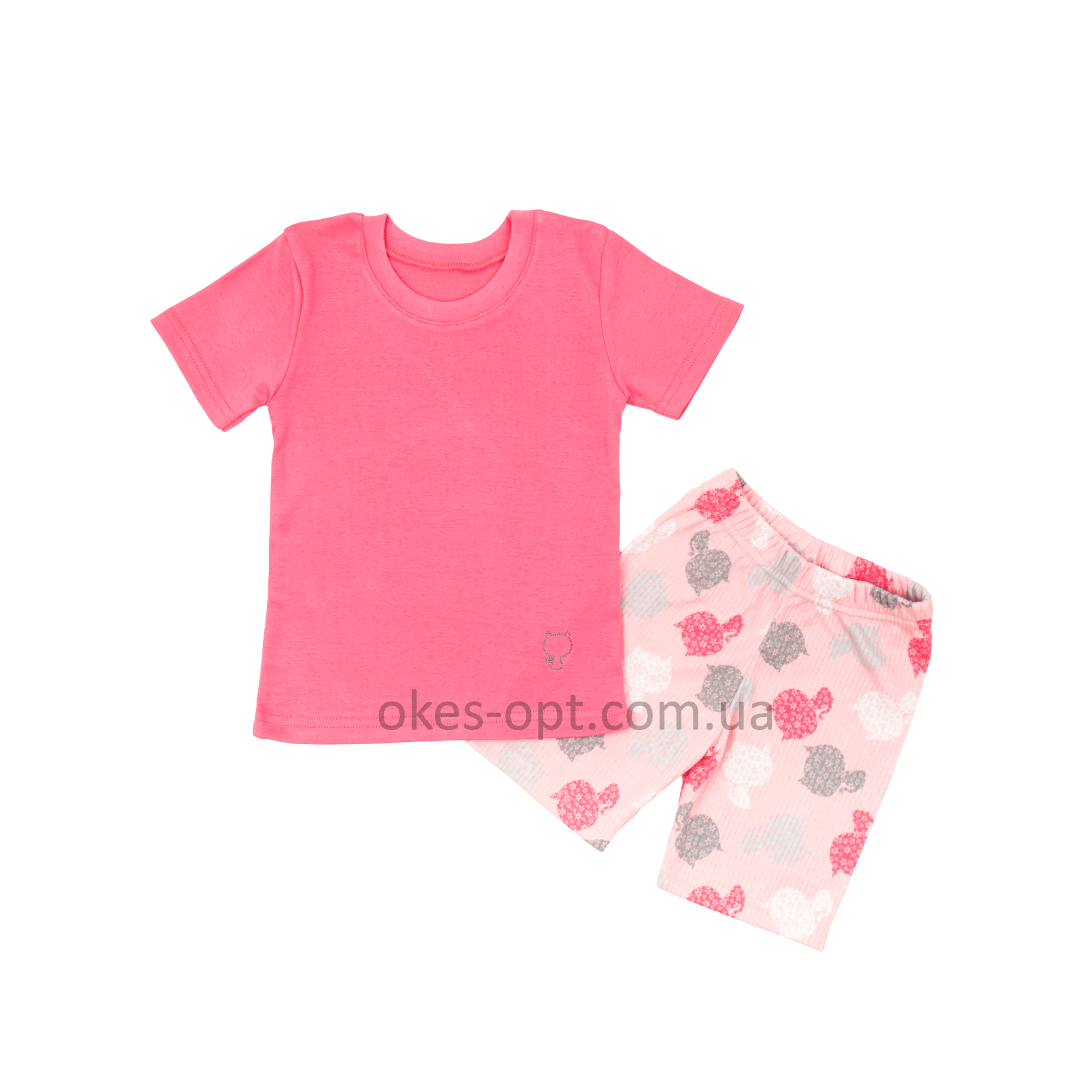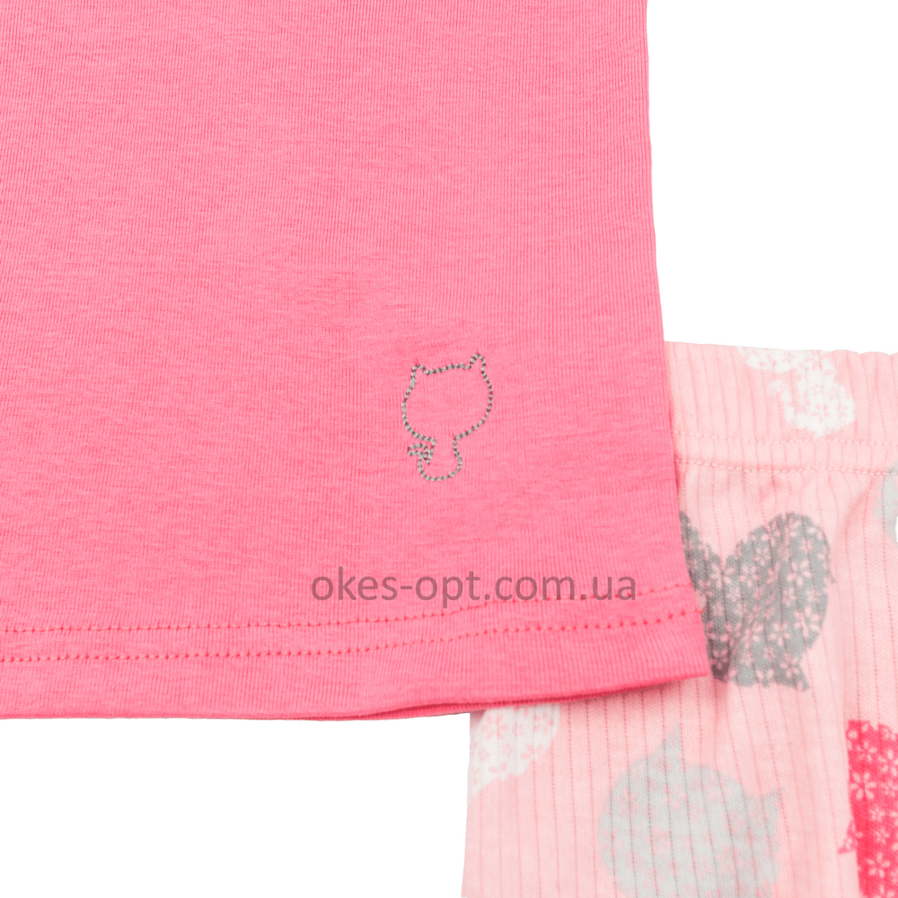 Піжама для дівчинки літня оптом. Супер якість. Футболка з шортами. Маленька вишивка у вигляді котика на футболці