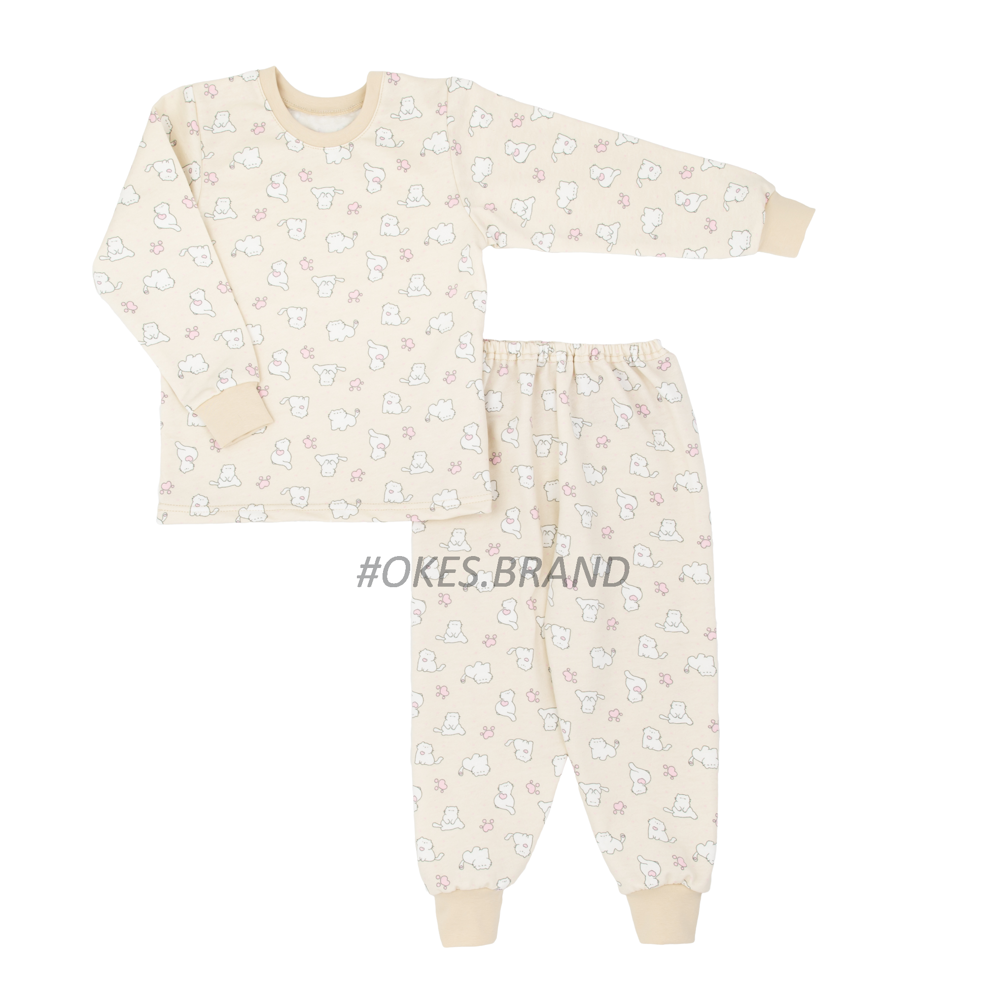 Дитяча тепла піжама на дівчинку має манжети, вдягається через голову. Впродовж часу не сідає, не деформується, утримує колір. Піжама повномірна.