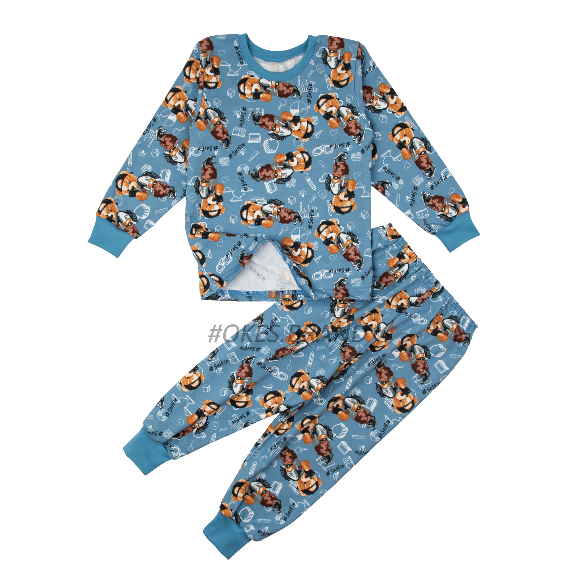 Дитяча тепла піжама на хлопчика має манжети, вдягається через голову. Впродовж часу не сідає, не деформується, утримує колір. Піжама повномірна.